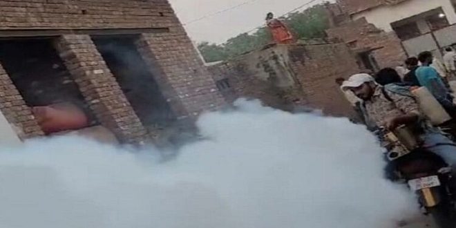 गांव में फॉगिंग कराते ग्राम प्रधान