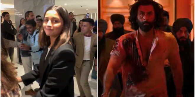 अपने पति रणबीर की फिल्म देखने के लिए आलिया गुरुवार को अपनी मां सोनी राजदान, पिता महेश भट्ट और बहन शाहीन भट्ट के साथ पहुंची थीं। हसबैंड को चीयर करने के लिए उन्होंने रणबीर के चेहरे वाली एक कस्टमाइज्ड टी-शर्ट पहनी थी, जिसने सभी का खूब ध्यान खींचा। वहीं आलिया जब फिल्म देखकर थिएटर से बाहर आ रही थीं, तो पैपराजी ने उनसे पूछा कि आपको फिल्म कैसी लगी। इस पर आलिया ने पहले कहा कि ‘शानदार।’ इसके बाद जब दोबारा पैप्स ने पूछा कि आलिया जी फिल्म कैसी लगी? तो इसका जवाब देते हुए आलिया ने कहा कि ‘खतरनाक।’ भले ही आलिया ने ‘एनिमल’ की तारीफ में कम शब्दों का इस्तेमाल किया हो। लेकिन इससे ये साफ जाहिर है कि रणबीर की ये फिल्म  सिनेमाघरों में धमाल करने वाली है।