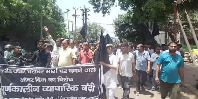 मंधना से जरीब चौकी तक बनने वाले एलिवेटेड ट्रैक का डिजाइन बदलने की मांग के समर्थन में बुधवार को जरीब चौकी बाजार के व्यापारियों ने बाजार बंद रखा। जुलूस निकाल कर प्रदर्शन किया गया।